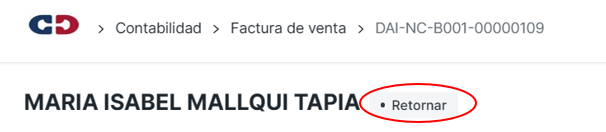 El estado de la nota de credito emitida será Retornar :