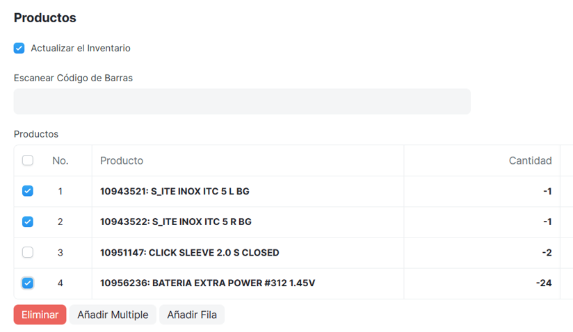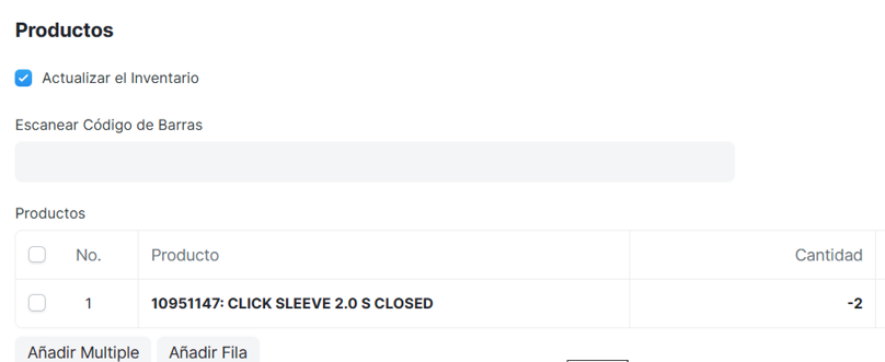4.En la sección productos, dejar solo el producto que el cliente devuelve, los demás productos se eliminan: