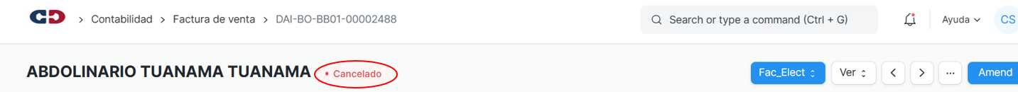 Finalmente el documento se actualiza a estado Cancelado