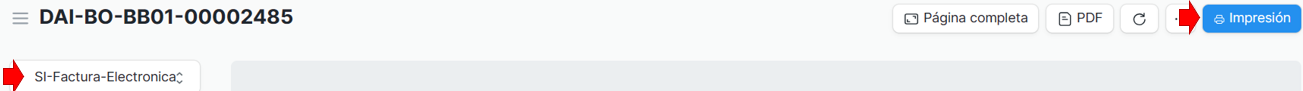 2.Seleccionar el formato de impresion "SI - Factura-Electronica" y luego clic en la opcion Impresión: