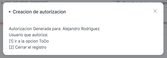 Una vez autorizado, click en cerrar "X" de la ventana emergente y enviar el documento.