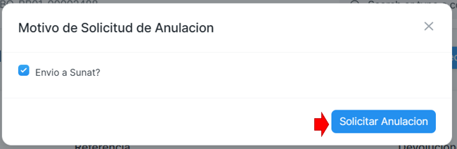 2.Se abrirá una ventana emergente y clic en Solicitar Anulacion: