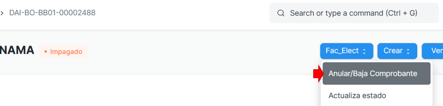 - Ubicar el comprobante y luego ir a la opción Anular/Baja Comprobante del menú Fac_Elect:
