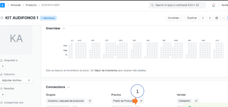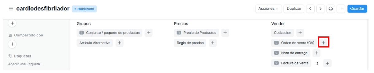 En el mismo producto creado como KIT en la sección Vender, clic en "+" Orden de Venta
