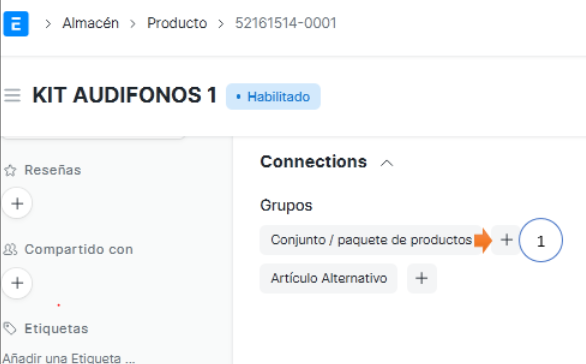 En el mismo producto creado en la parte superior, ubicamos y hacemos clic en + Conjunto/paquete de producto.